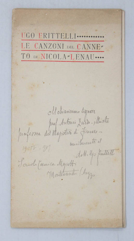 In-8°, carte [5]. Brossura editoriale. Invio autografo dell'Autore.