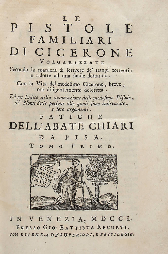 Le Pistole Familiari ... volgarizzate secondo la maniera di scrivere de' tempi correnti: e ridotte ad una facile dettatura. Con la Vita ... Fatiche dell'Abate Chiari da Pisa.
