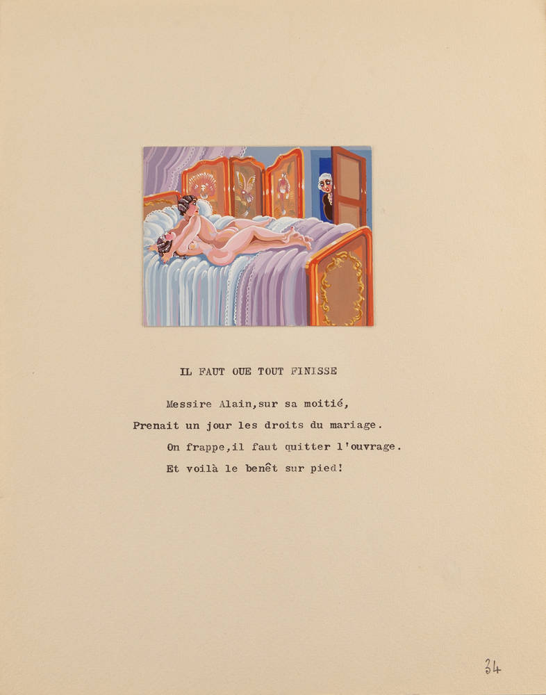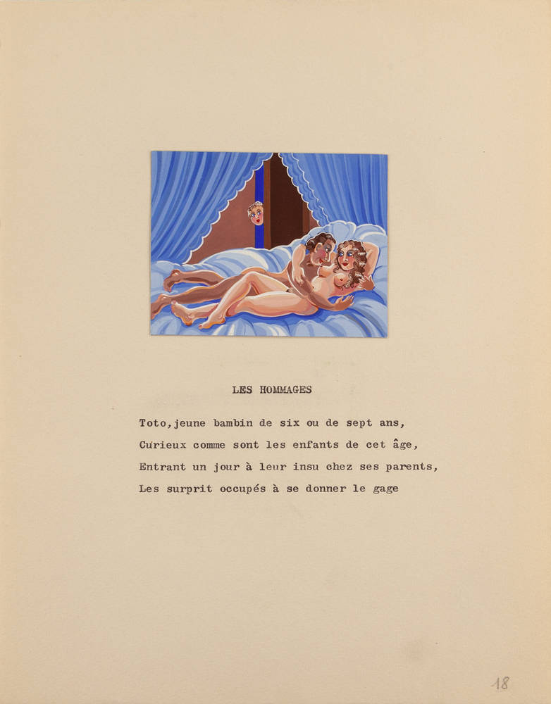 Esemplare unico dattiloscritto. Opera in versi di autore anonimo che ricalca il titolo di " Les hasard du coin du feu di Crébillon, raffinata opera galante del Settecento. Assai pregevoli le illustrazioni erotico-umoristiche che accompagnano il testo.