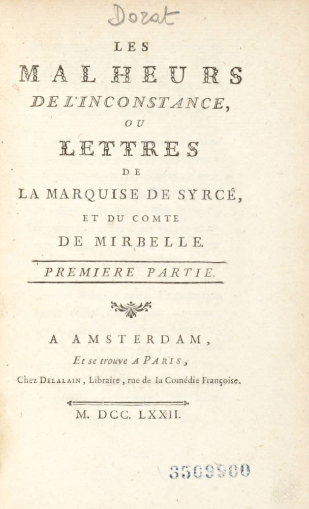 Les Malheurs de l'Incostance, ou Lettres de la Marquise de Syrcé et du Comte de Mirbelle.