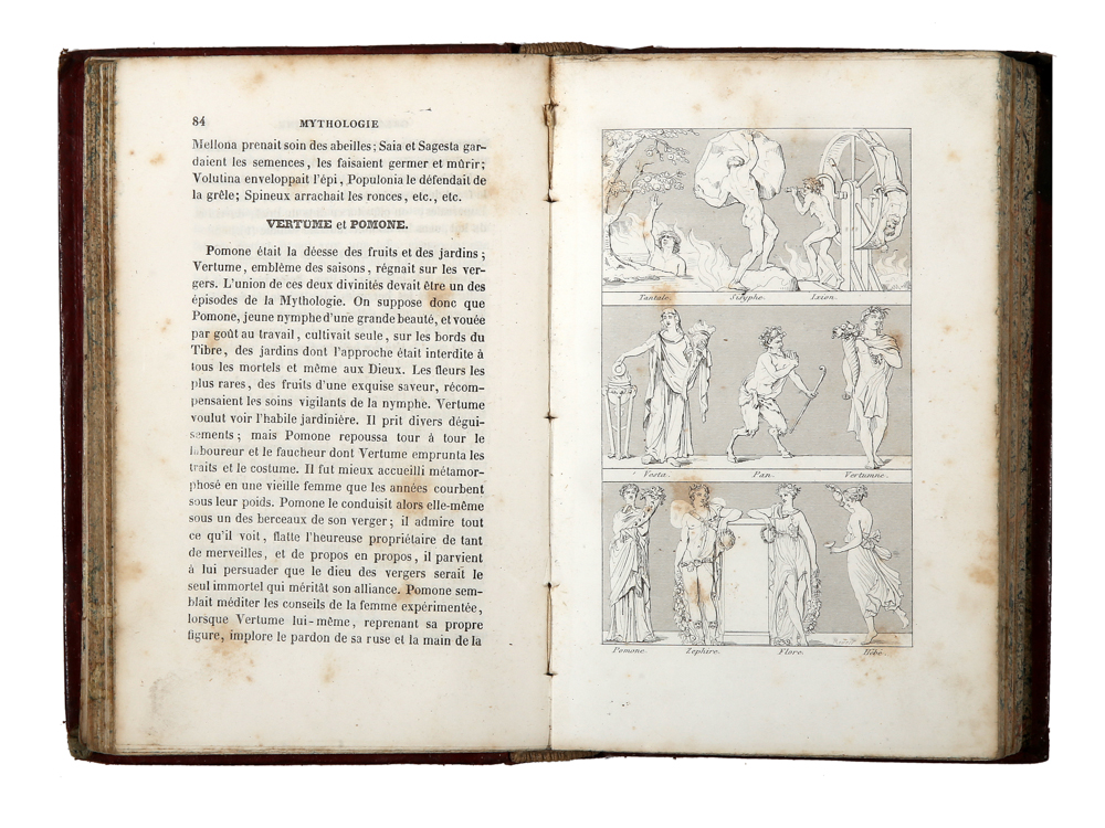 In-8° (mm 175x108), pagine [4], II, 356 con 70 figure fuori testo. Bella legatura coeva in pieno marocchino rosso, con impressioni a freddo, dorso decorato in oro. Bell'esemplare.