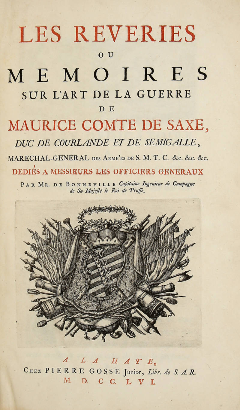 Les Rèveries ou Mémoires sur l'art de la guerre...Dediès a Messieurs les Officiers Generaux par Mr. de Bonneville Capitaine Ingenieur de Campagne de Sa Majesté le Roi de Prusse.
