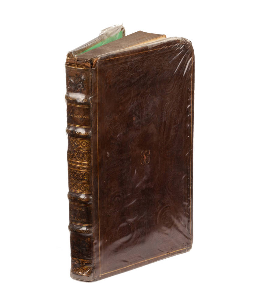In-8° (mm 200x125), pagine 347, [3]. Bella legatura d'amatore in pelle coeva di tipo monastico, con impressioni a freddo sui piatti, al centro del piatto anteriore il monogr. in oro: "FC" (Federico Campanella), antico possessore dell'esemplare, dorso e tagli in oro. Foxing sparso. Legatura un pò lisa.