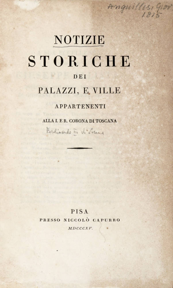 Notizie storiche dei Palazzi, e Ville appartenenti alla I.E.R. Corona di Toscana.