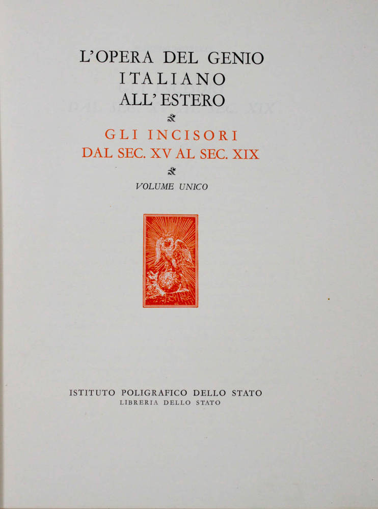 OPERA (L') del Genio Italiano all'Estero. Serie Prima: Gli incisori dal sec. XV al sec. XIX. Volume unico.