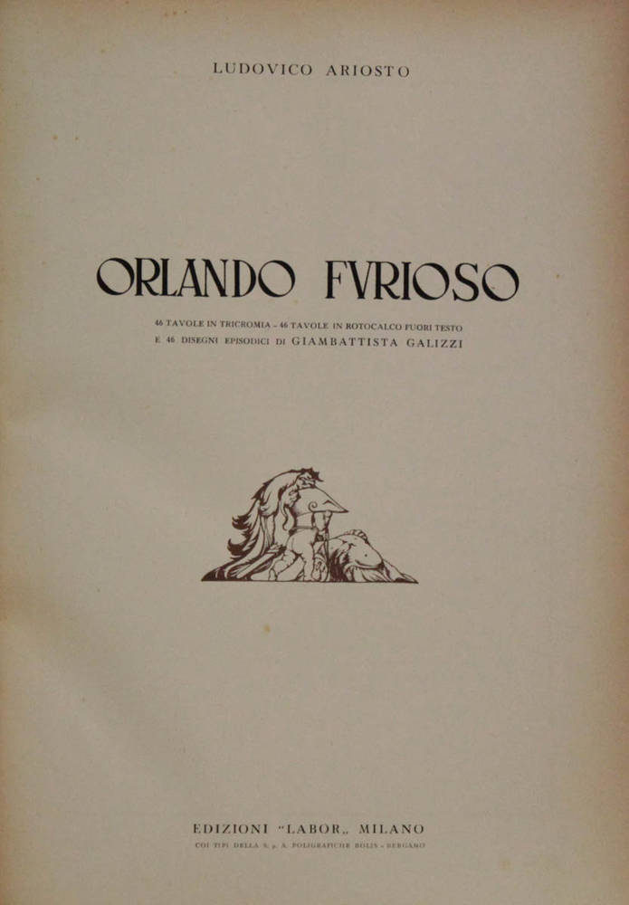 Orlando Furioso. 46 tavole in tricromia-46 tavole in rotocalco fuori testo e 46 disegni episodici di Giambattista Galizzi.