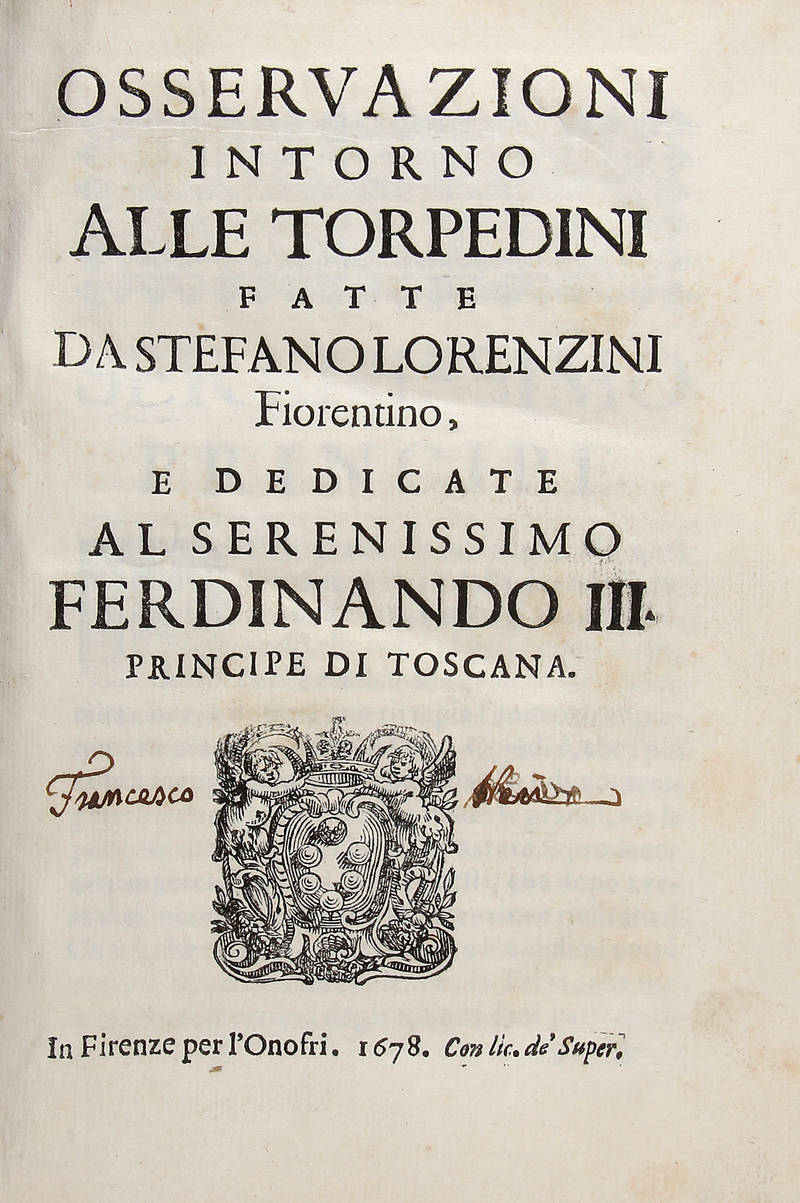 Osservazioni intorno alle torpedini e dedicate al Serenissimo Ferdinando III Principe di Toscana.