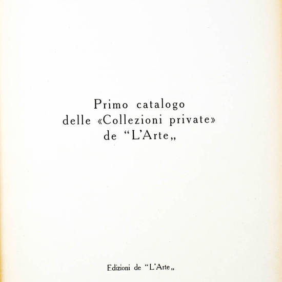 Primo catalogo delle "Collezioni private" de "L'Arte".
