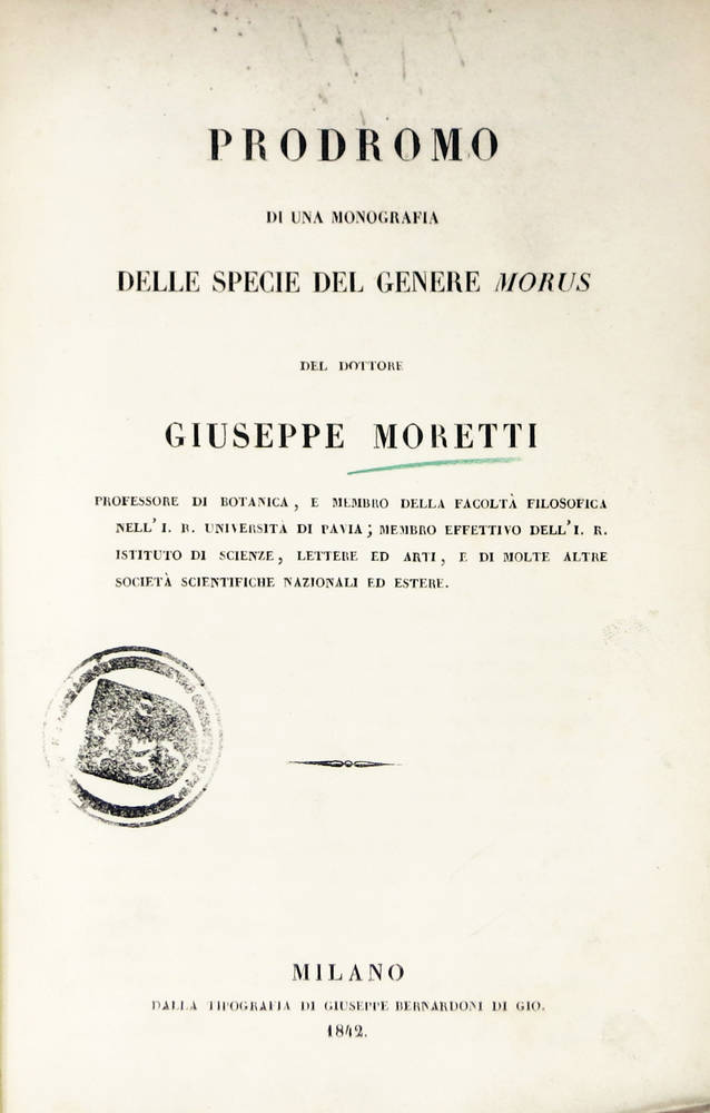 Prodromo di una monografia delle specie del genere Morus. (Segue:) DIFESA e illustrazione delle opere botaniche di Pietro Andrea Mattioli.