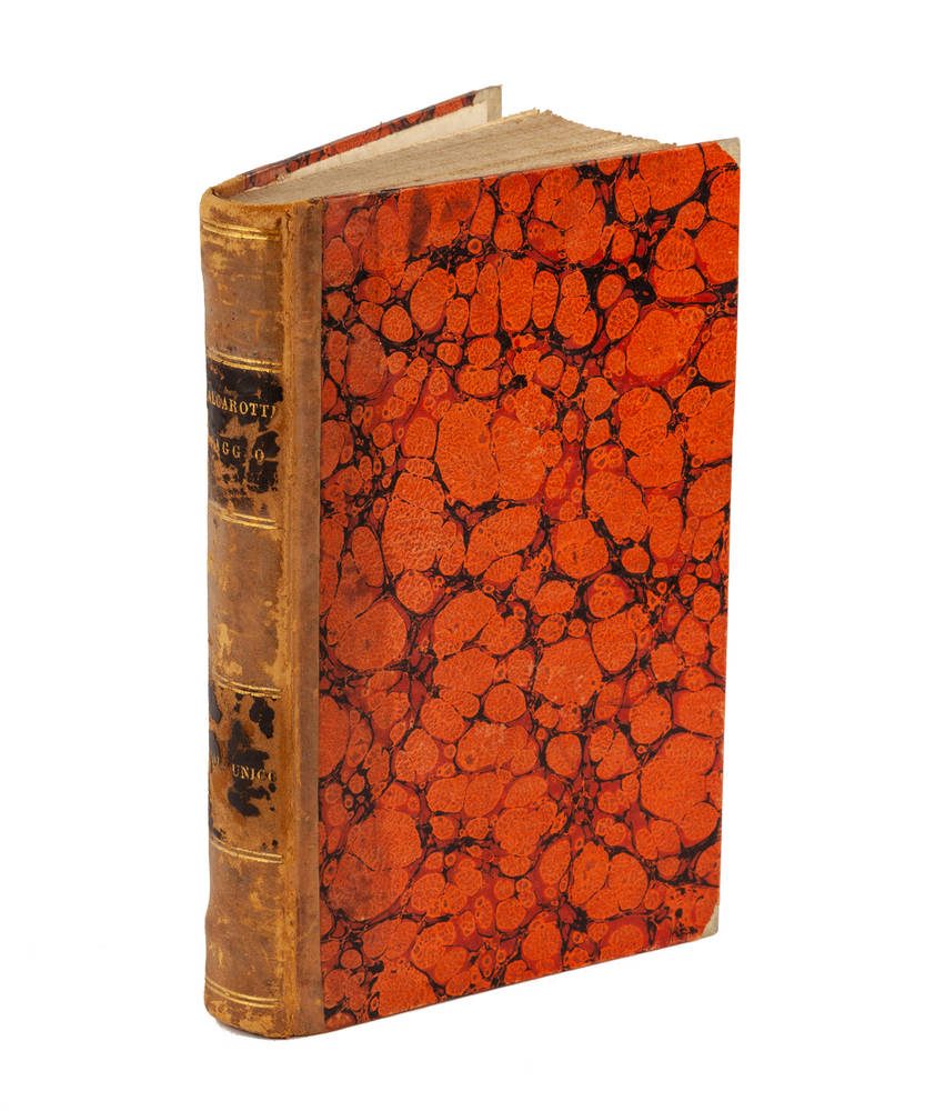 In-8°( mm 210x130), Pagine XIV, 304. Antiporta in rosso e nero con lo stemma sabaudo inciso in rame da Gizzardi con il titolo in rosso e nero " Saggio sopra l'Arte Storica... datato 1773 e 1 tavola ripiegata fuori testo. Legatura in mezza pelle coeva, piatti marmorizzati, titoli e fregi oro al dorso.
