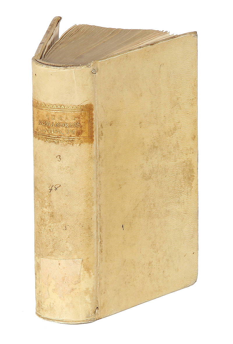 In-12° (mm 158x80), carte [12], pagine 610, [22] con la grande marca della Tip. del Seminario in antiporta incisa. Legatura in piena pergamena coeva. Ottimo esemplare.