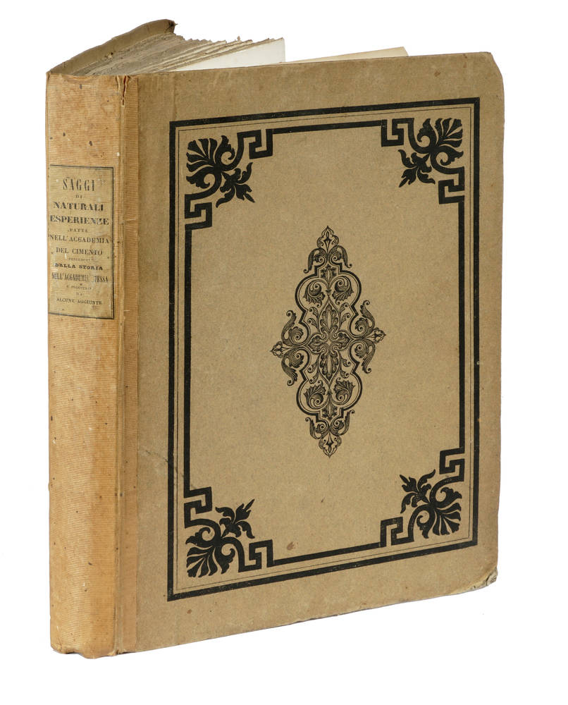 Edizione rarissima, stampata in pochi esemplari ad personam, edito a cura di Leopoldo II Granduca di Toscana, destinata in dono agli scienziati congregati in Firenze nel settembre del 1841 in occasione della terza Riunione...Quasi tutti gli esemplari portano sul foglio di sguardia il numero dell'esemplare offerto al destinatario, scritto a mano e firmato da F. Tartini, segretario generale della terza Riunione. Riccardi, II, 408: "Bellissima edizione pubblicata per la riunione del Terzo Congresso degli scienziati in Firenze. Le notizie storiche dell'Accademia del Cimento sono di Vicenzo Antinori, e le aggiunte vennero compilate da G.Gazzari. Interessantissime sono in particolare le notizie dell'Antinori per la storia delle matematiche in Toscana e per la storia della scuola Galileiana". Carli-Favaro, 815. Razzolini, 215. Brunet, V, 29. Choix, 7727.