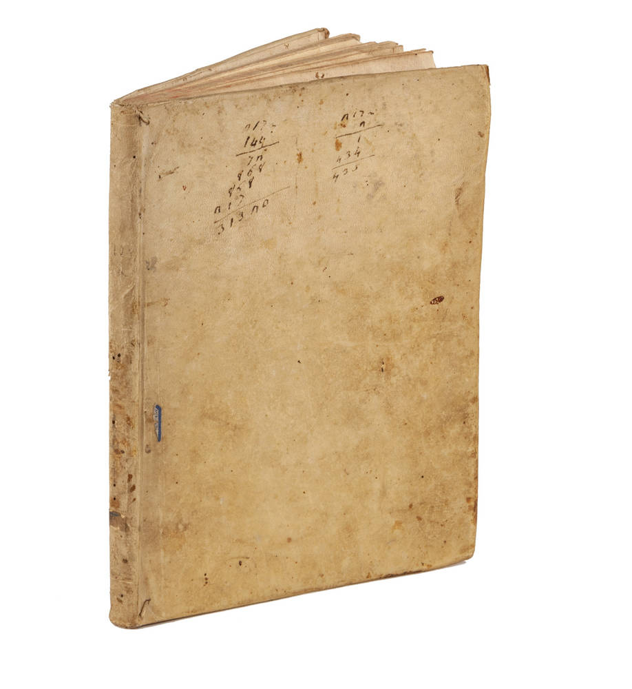 In-8° (mm 215x163), pagine [2], 48, [20]. Pergamena coeva.