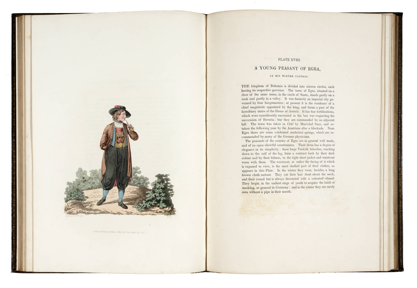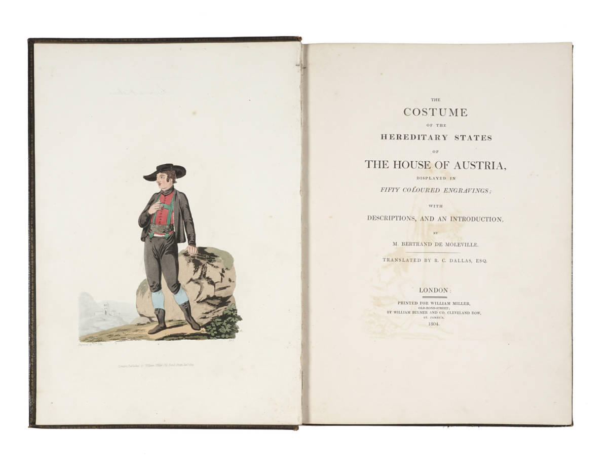 The Costume of the hereditary states of the house of Austria, displayed in fifty coloures engravings; with descriptions and an introduction ... Translated by R.C. Dallas. (Testo inglese-francese).