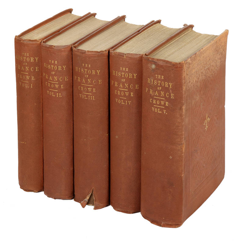 5 volumi in-8° (mm 220x150), pagine XXIII, [1], 552 + 24 pagine di catalogo di opere edite da Longman; XVIII, 648; XXIV, 704, [1] + 24 pagine di catalogo; XVI, 692 + 24 pagine di catalogo; carte [2], XVI, 867, [1] + 24 pagine di catalogo. Legatura in tela editoriale, con impressioni a freddo e dec. in oro. Tracce di foxing alle prime pagine, dorso liso al margine del vol. III, ma bell'esemplare, intonso.