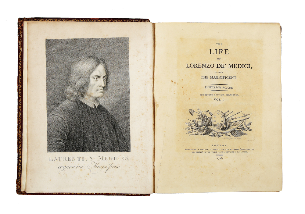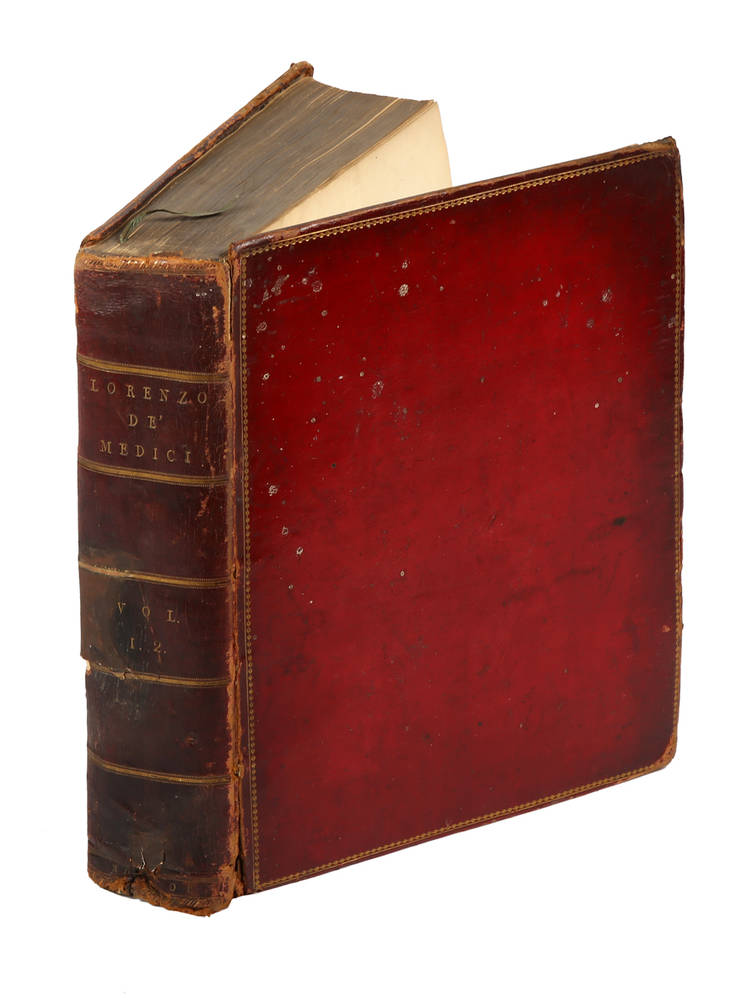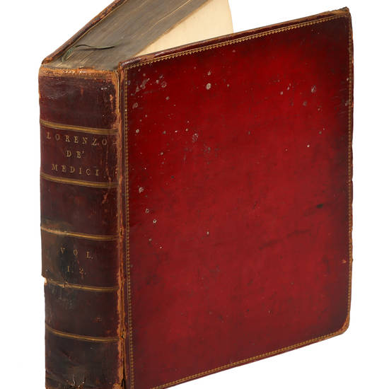 Seconda edizione non meno rara e pregiata della prima (Liverpool, 1795). Molte parti del testo sono scritte in lingua italiana. Moreni II, 267 elenca la prima edizione (Liverpool, 1795 in-4°, voll. II): "Fu riprodotta in Londra nel 1796 in T.II in-4°. Contiene questa Vita l'Istoria di gran parte della Famiglia Medicea, e di tutto ciò, che il Secolo XV produsse di grande nell'Italica, per non dire Fiorentina Letteratura, e nelle Belle Arti, in cui fioriva superiormente a qualunque altra Città la mia Patria...". Ceresoli, 456: "Rara edizione della biografia e delle poesie di Lorenzo de' Medici, scritta in inglese. Le poesie del Magnifico sono tratte dai testi a penna della Laurenziana, nei quali il poemetto La Caccia col Falcone porta il titolo di Uccellagione ed anche, in alcuni altri, quello di Uccellagione a Starne. Dal titolo si apprende che quest'opera del R. è alla seconda edizione: non conosciamo la prima". (sic). Souhart, 327. Renault e Sassi, 39. Ghidini, 638.