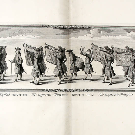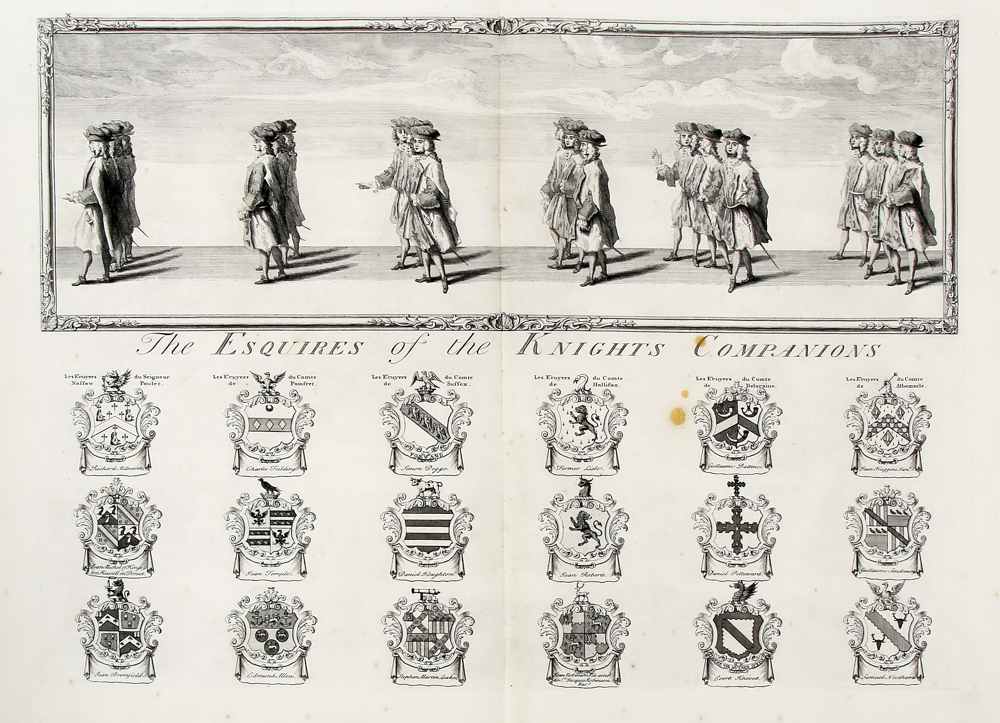 È la migliore edizione di questo famoso e popolare libro con le armi dei cavalieri dell'ordine militare of the Bath, istituito nel 1732. Le figure rappresentate nelle bellissime tavole fuori testo, a doppia pagina, sono opera dello stesso J. Pine (1690-1756) e si dice che raffigurino personaggi reali: cavalierei e loro equipaggiamenti ripresi da disegni originali di Joseph Highmore (1692-1780). I capilettera e le molte vignette contenute nel testo, fanno di questo libro uno dei capolavori dell'arte incisoria e tipografica inglese del '700. Brunet IV, 665: "Ouvrage orné de 20 pl., dont les figures sont des portraits...Quelques exemplaires renferment une pl. supplémentaire gravé en 1732 (the arms of the four Knights companions of the Bath)" (come si trova nel nostro esemplare). Graesse V, 298.