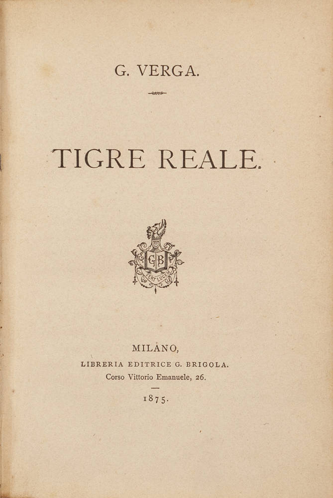 Edizione originale. Terzo romanzo della ‘trilogia milanese' dell'autore (insieme a «Eva» ed «Eros»). Raya, Bibl. Verghiana, 82.