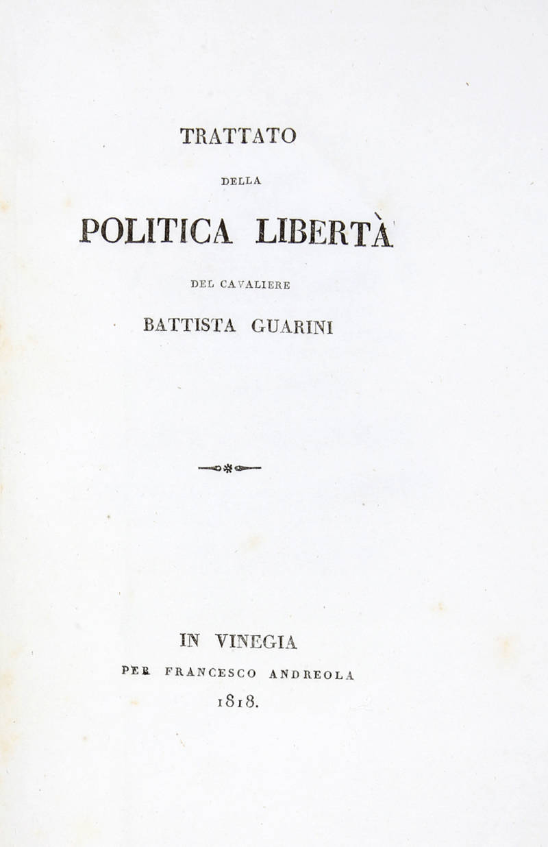Prima edizione tratta da un manoscritto del fondo Nani della Biblioteca Marciana. Il Guarini scrisse l'opera per il Granduca di Toscana nel 1599.