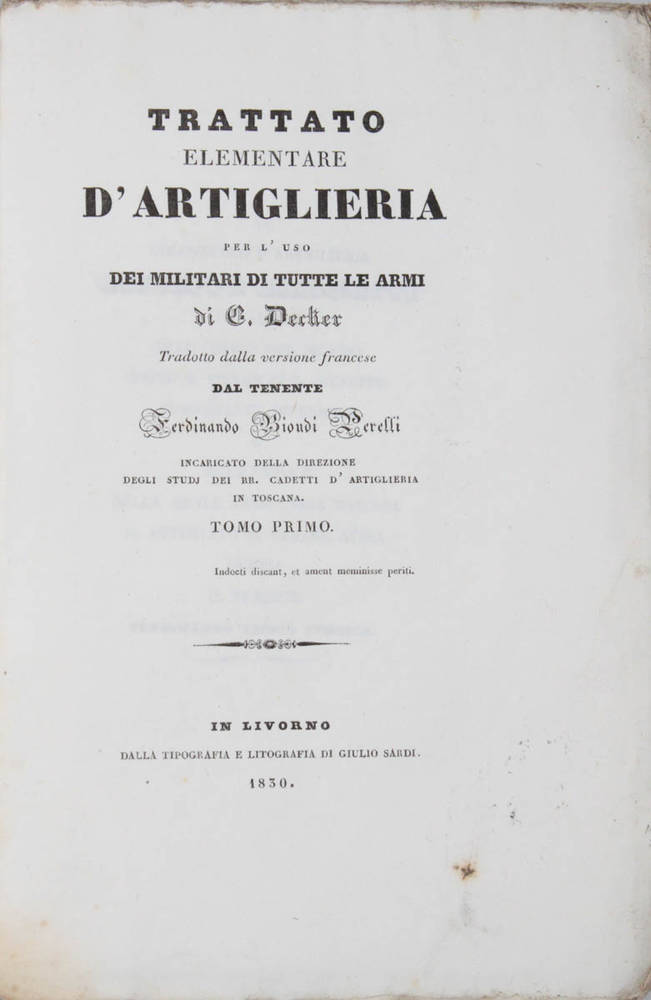 Trattato elementare d'artiglieria per l'uso dei militari di tutte le armi. Tradotto dalla versione francese dal tenente Ferdinando Biondi Perelli...