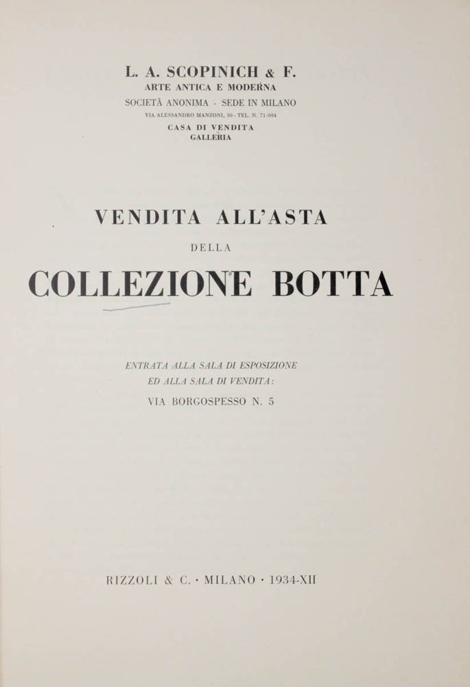 VENDITA all'asta della Collezione Botta. (Prefazione di Enrico Somaré). Galleria L.A. Scopinich & F.