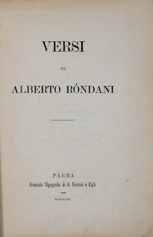 Parma, Tipografia di G. Ferrari e Figli, MDCCCLXXI (1871).