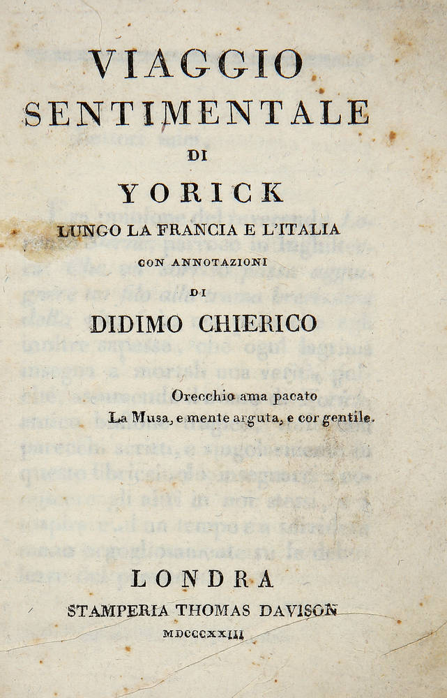 Viaggio sentimentale di Yorick lungo la Francia e l'Italia, con annotazioni di Didimo Chierico.